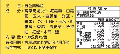 冷凍- 郭老師寶寶燴料 - 五色素鮮蔬 2入/1盒