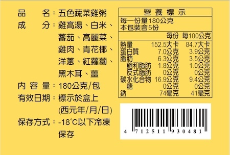 雞高湯、白米、蕃茄、高麗菜、雞肉、青花椰、洋蔥、紅蘿蔔、黑木耳、薑