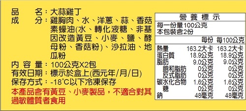 冷凍- 郭老師寶寶燴料 - 大蒜雞丁 2入/1盒