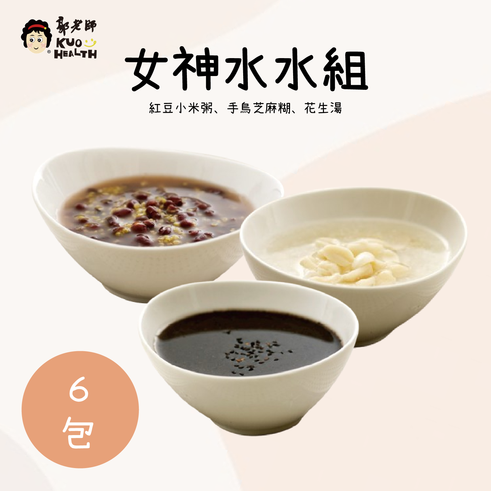 三款人氣甜品,一次滿足!紅豆小米粥、守烏芝麻湖、花生湯,嚴選食材慢火熬煮,綿密香濃、口口暖心。