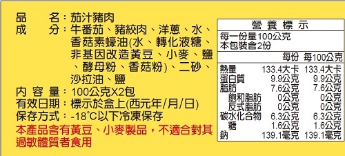 冷凍- 郭老師寶寶燴料 - 茄汁豬肉 2入/1盒